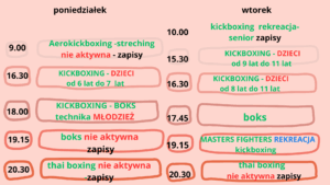 Grupy są w trakcie naboru z tego powodu nie wszystkie trening na grafiku wystartowały zapraszamy do kontaktu i zapisów