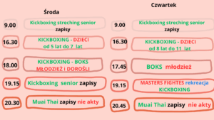 Promocja Jesień 10 %, Zapisz się w miesiącu Październiku zniżka do końca roku Thai boxing w Krakowie Grupa dorośli początkująca ul. Pod Fortem 2F Azory Kraków Młodzież godz.17.45.00-19.00 Dorośli poczatkująca grupa godz. 19.15 - 20.30 -poniedziałek : 18.00 wtorek : godz.18.00 -środa : godz.18.00 -czwartek : godz. 18,00 -piątek : godz. 16.30 Zawodnicza grupa Trener boksu Kraków kickboxing Azory boks Azory kickboxing Krowodrza kickboxing Górka Narodowa Zapisy i więcej informacji : Formularz kontaktowy w zakładce "kontakt"